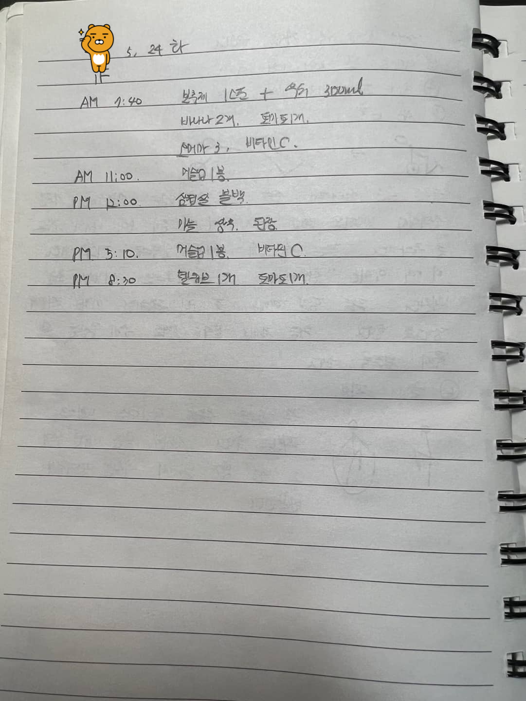 오후 5시 10분 : 머슬업 1 봉지, 비타민 1알