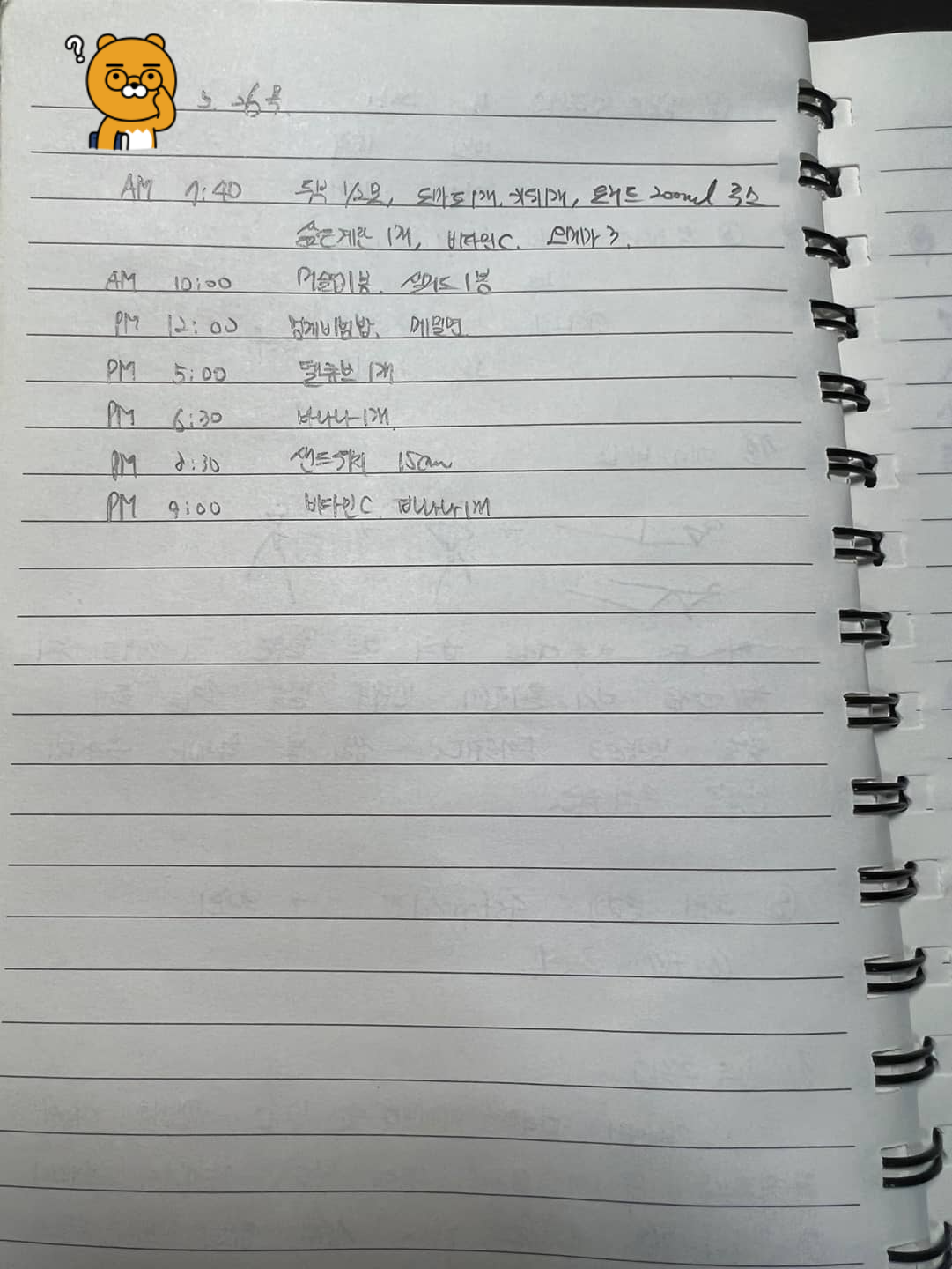 오후 9시 : 비타민 1알, 바나나 1개