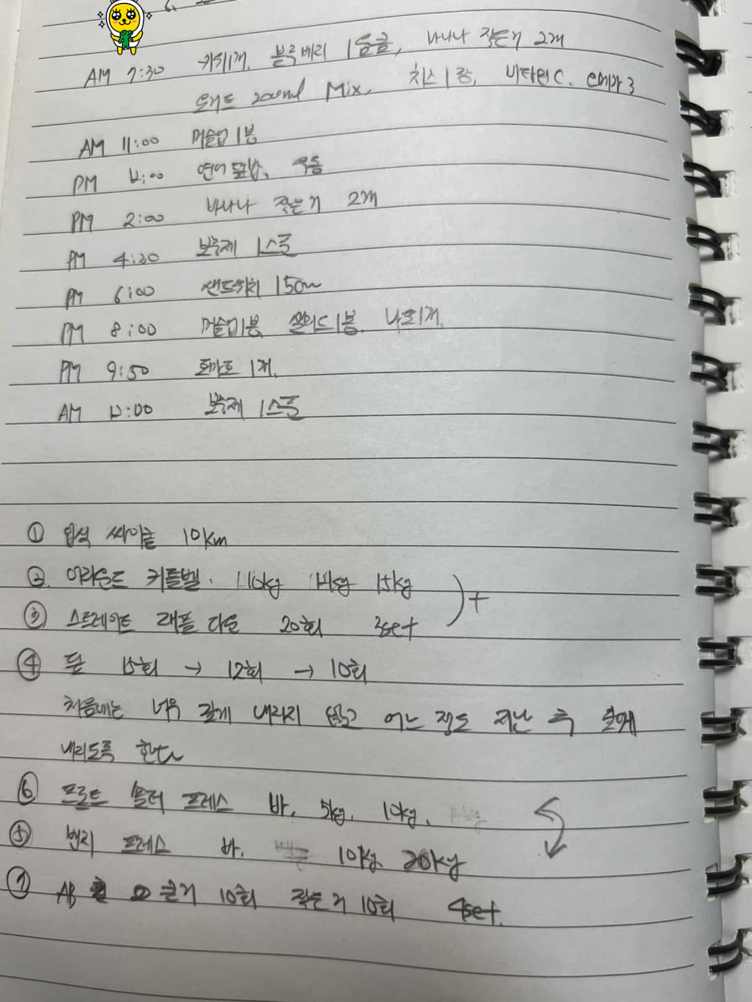 PT 수업 44회 차 식단 및 운동 기록