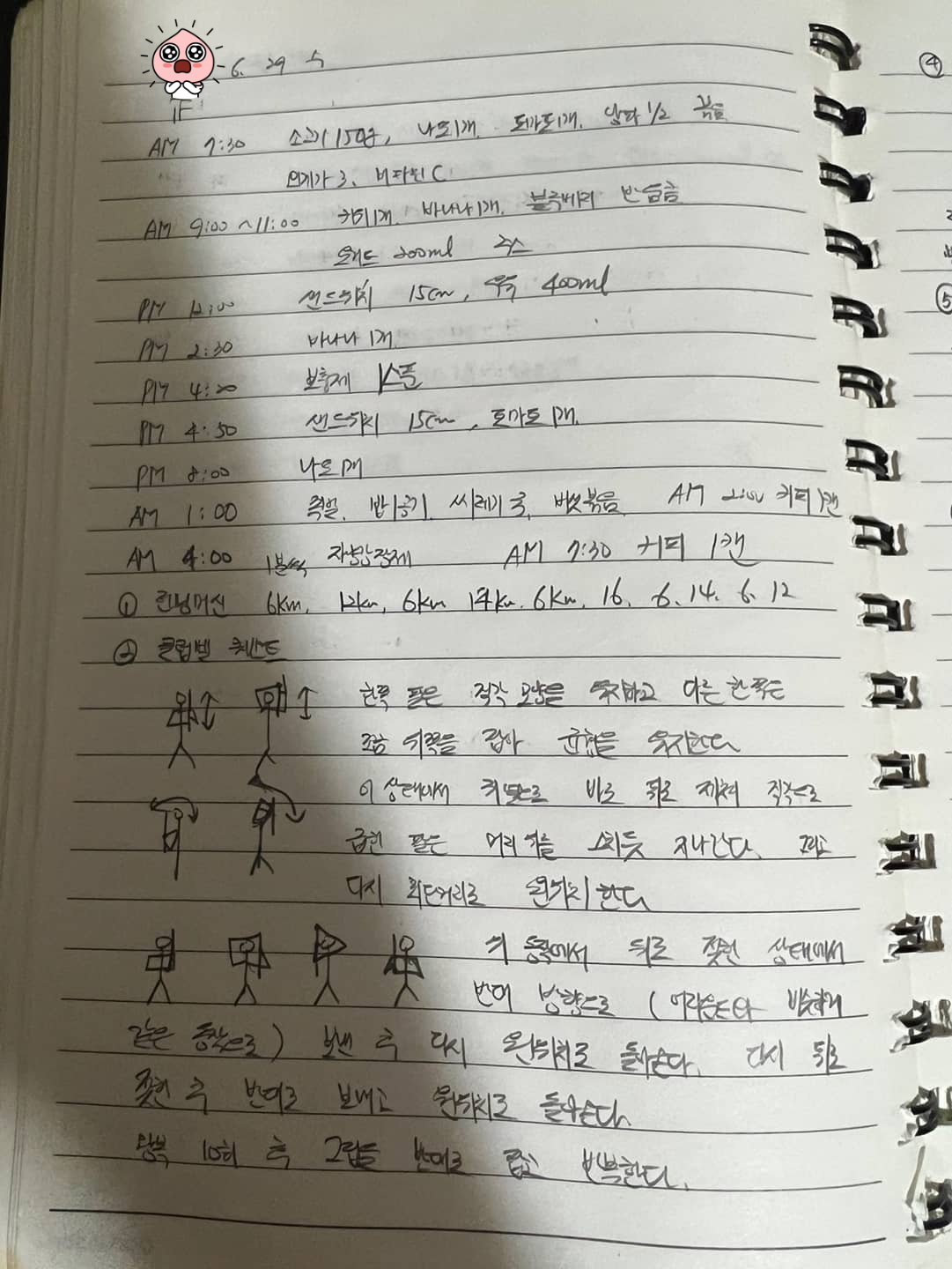 오전 9시 : 키위 1개, 바나나 1개, 블루베리 한 움큼, 450㎖ 요구르트 반 통