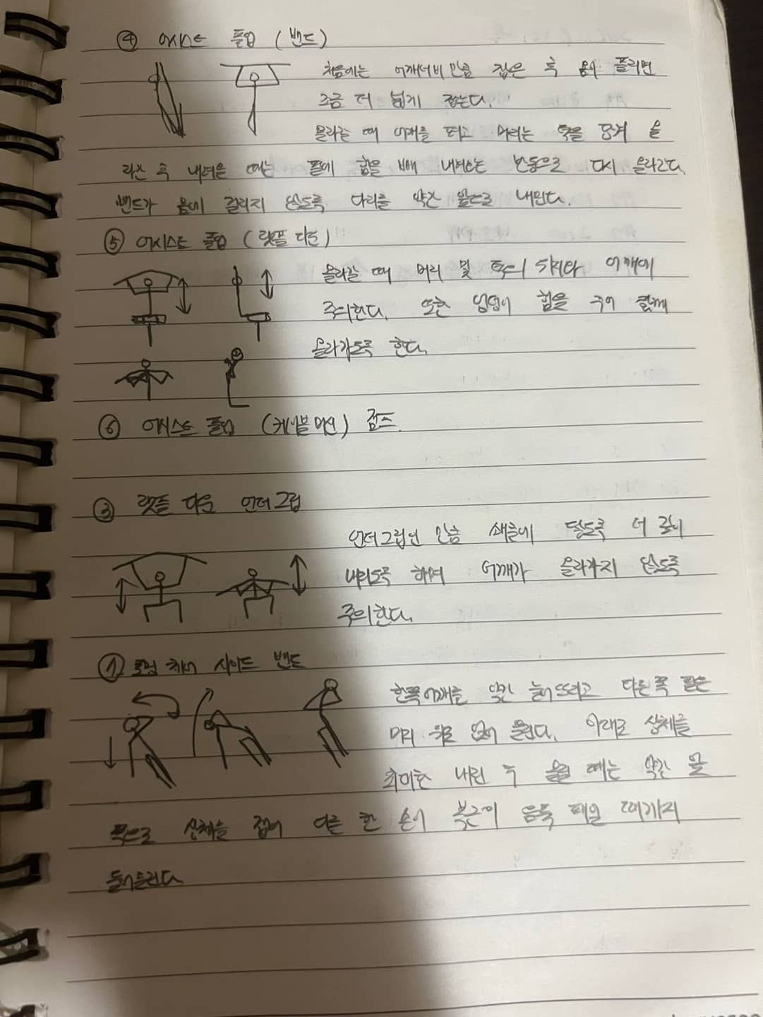 등 부위에 집중하여 운동 루틴이 진행되었습니다. 클럽벨 캐스트의 경우 스트레칭으로 몸을 풀어주는 역할을 하며 로만 체어 사이드 밴드의 경우 운동 마무리 후 복근 운동으로 추가로 진행하였습니다.
