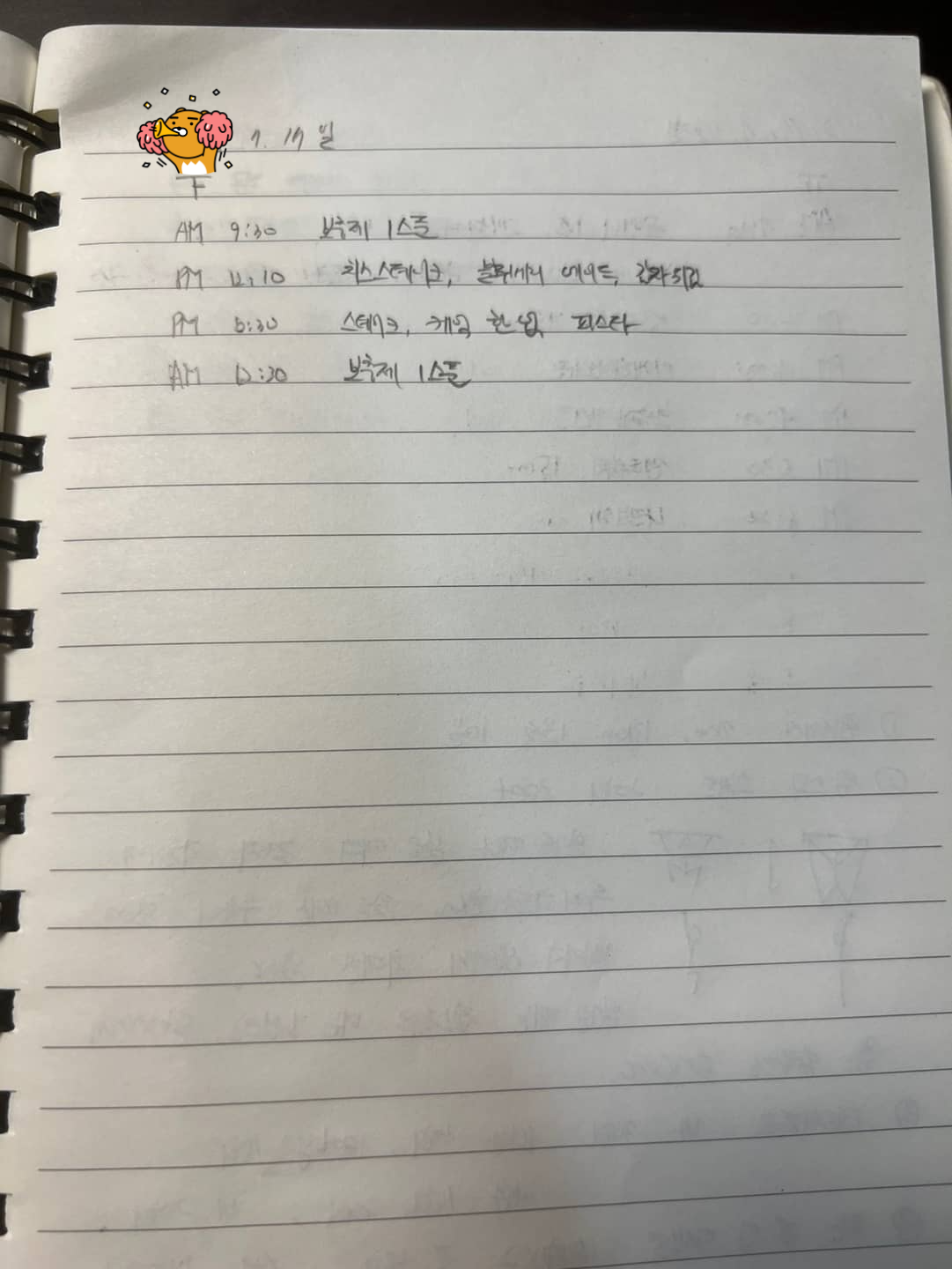 PT 수업 54회 차 식단 및 운동 기록
