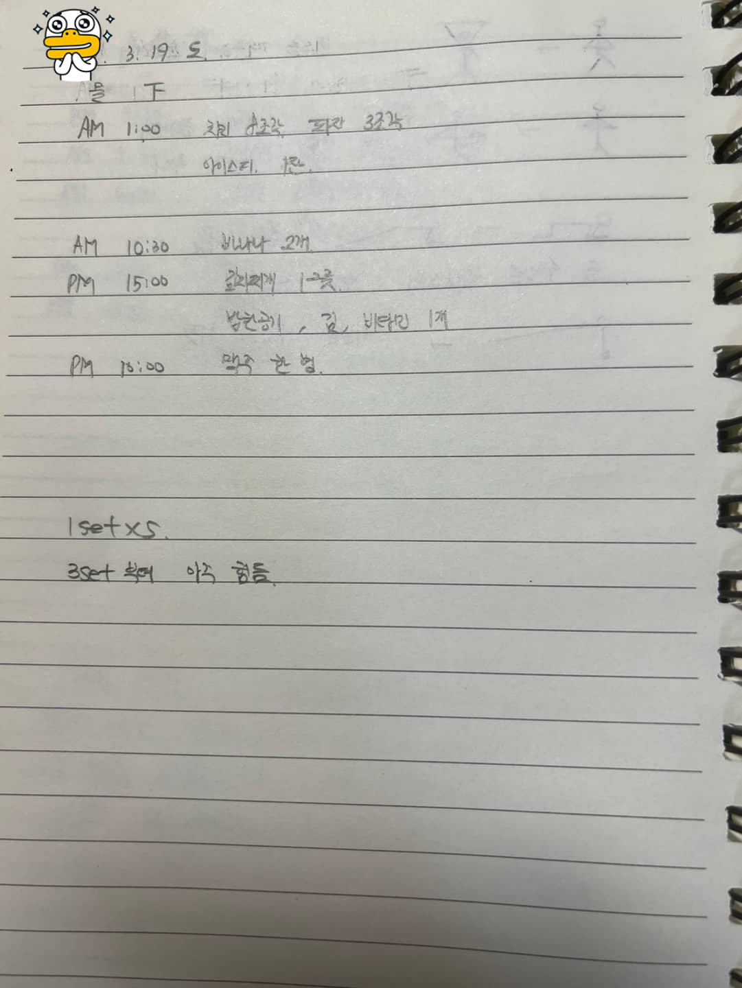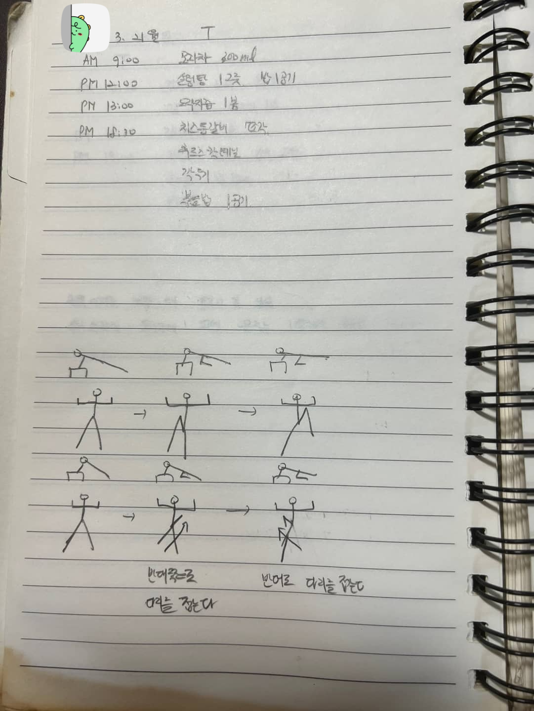 바디프로필 3회 차 식단 및 운동 기록 수요일 수업 진행 후 트레이너님의 숙제가 주어졌습니다. 목요일 집에서 해야 하는 홈트레이닝 과제!! 월수금은 개인 PT 수업이 있지만 화목, 그리고 토일은