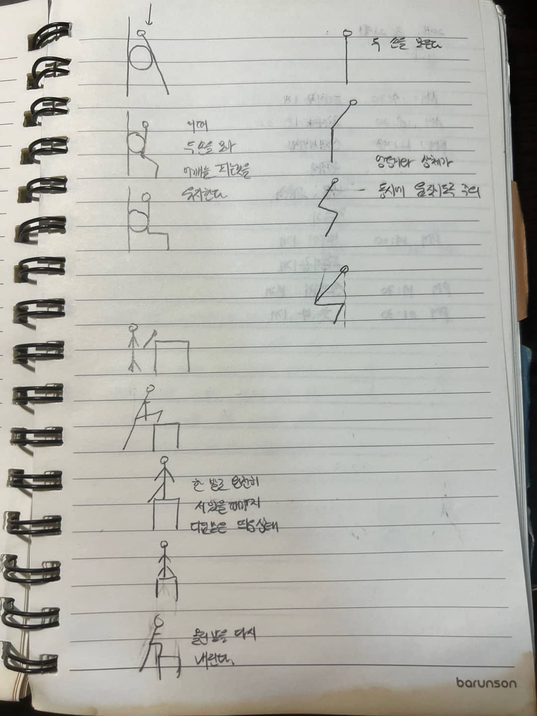 그리고 ⑥번부터 ⑧번까지 배웠던 동작을 3세트 진행하였습니다. 총 8세트를 진행하는데 40분 정도 걸렸습니다.