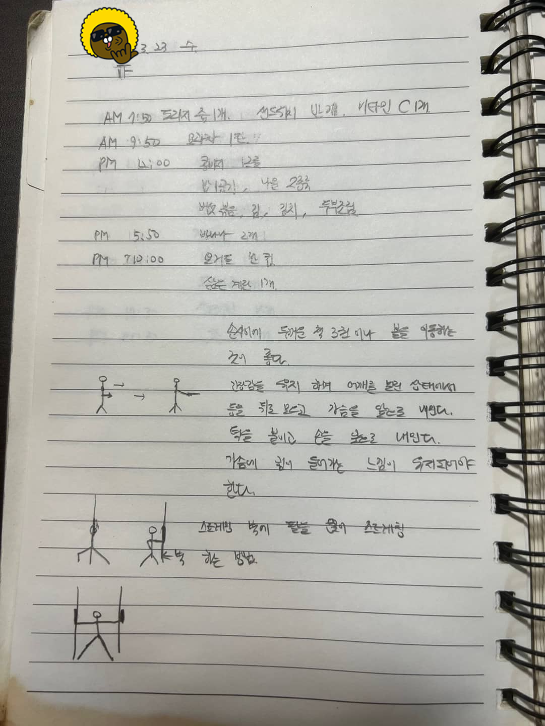 화요일 홈트레이닝 과제 월요일에 배웠던 운동을 다시 반복하는 것이었어서 따로 기재하진 않았습니다.