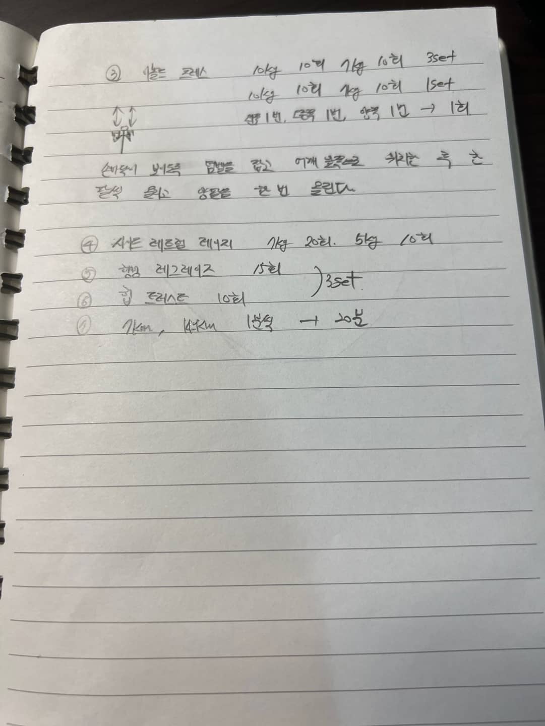 10㎏ 10회, 7㎏ 10회 4세트