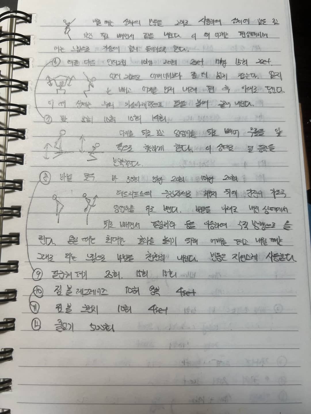 10㎏ 20회 2세트, 15㎏ 15회 2세트