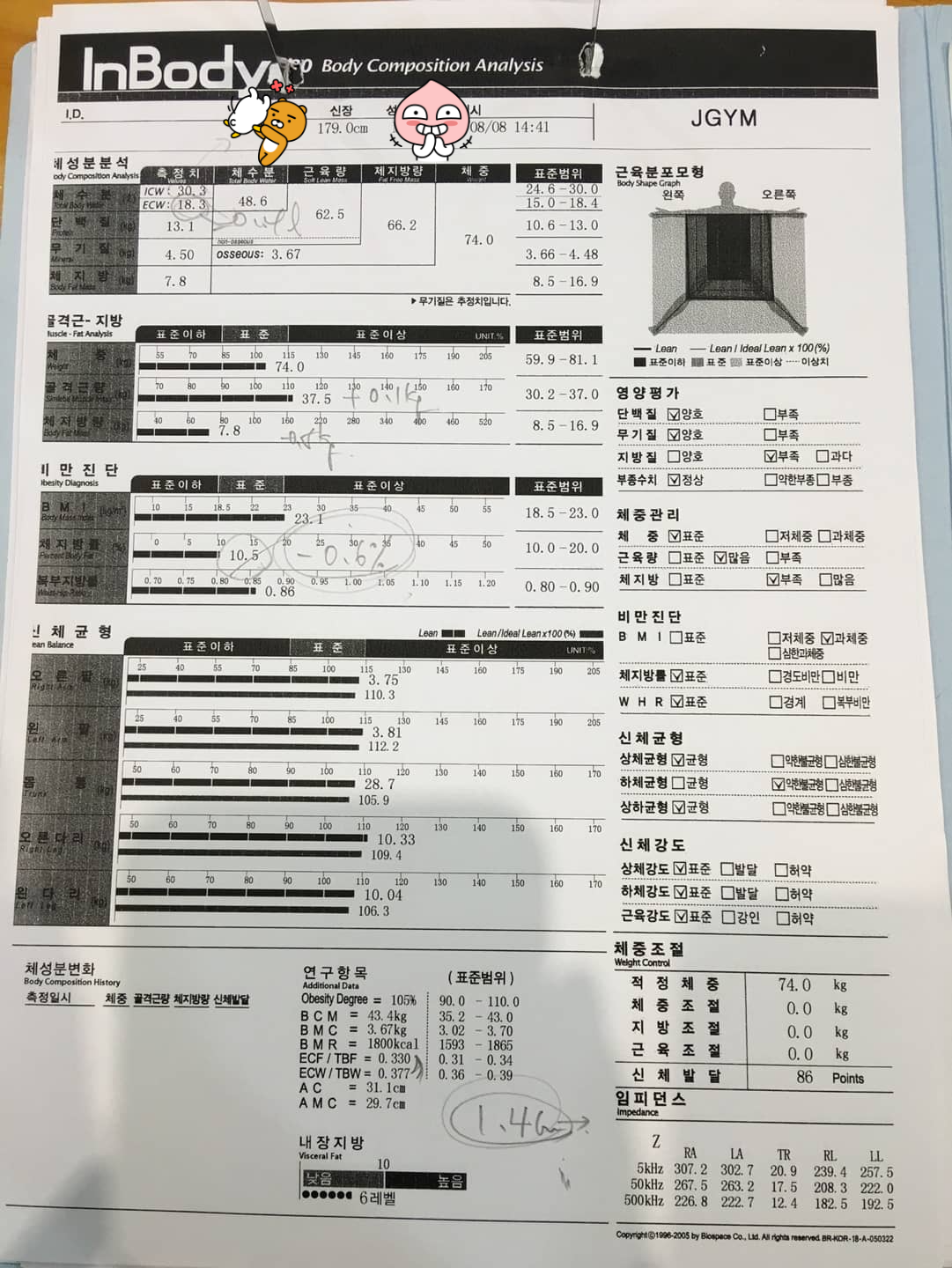 바디프로필 22주 차 인바디 측정 결과