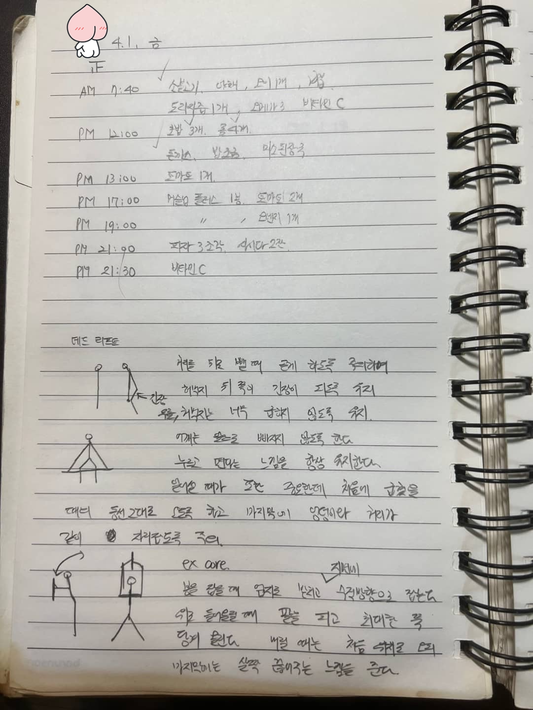 4월 1일 PT 수업 9회 차 식단 및 운동 기록