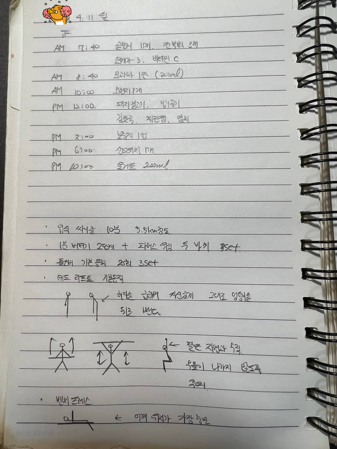 4월 11일 PT 수업 13회 차 식단 및 운동 기록